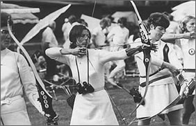 Marianne Schumacher (rechts neben Ruth Brugger) gewann in ihrer Laufbahn drei international besetzte Bogenturniere. Sie vertrat Deutschland bei Länderkämpfen ebenso wie Richard Schwolgin bei den Herren. In den Jahren 1967-1975 wurden in Tübingen sechs internationale Bogenturniere und die Deutschen Meisterschaften ausgetragen.